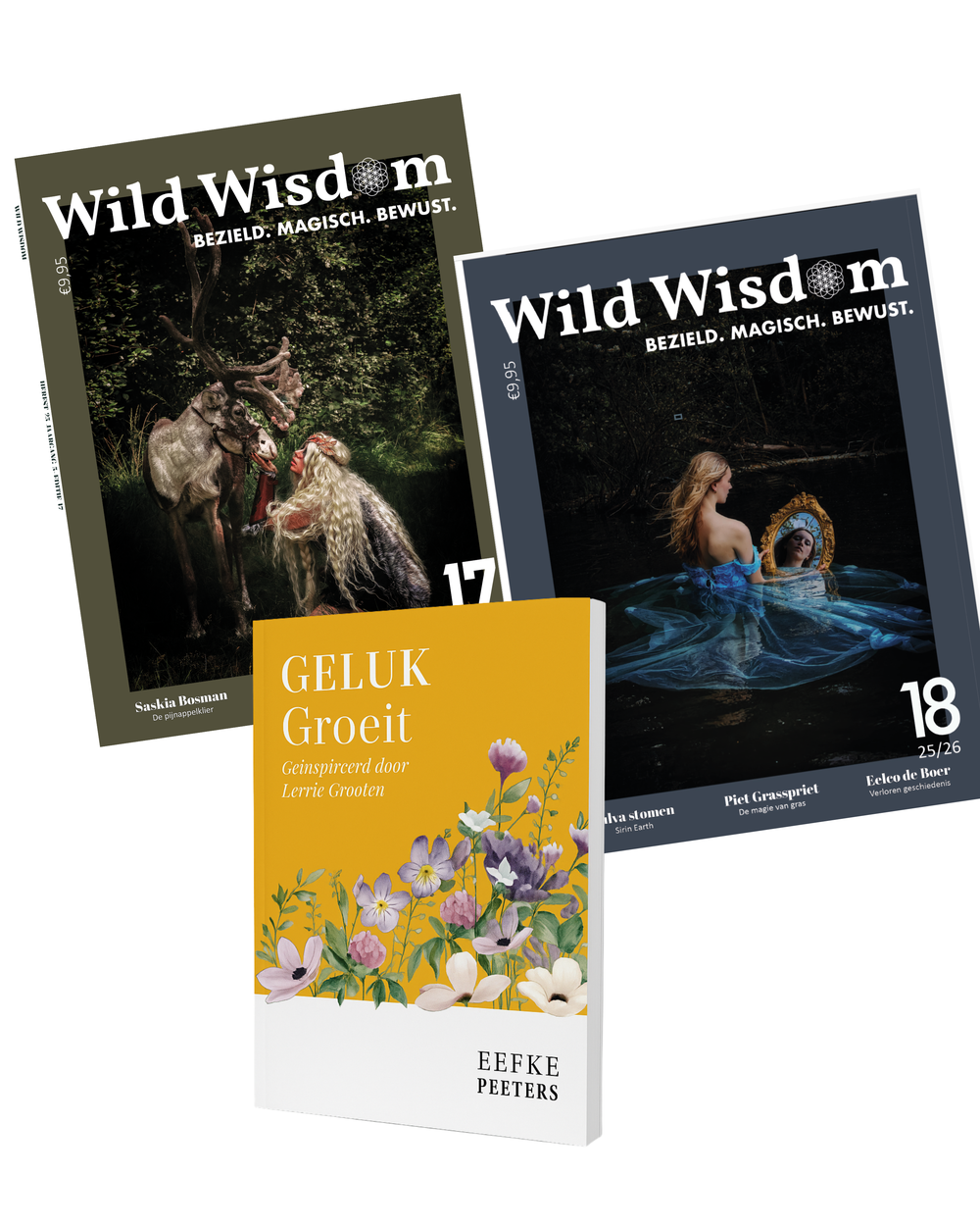 Drie krachtige bronnen van inspiratie in één pakket: het boek Geluk Groeit + Wild Wisdom Magazine editie 17 en editie 18.